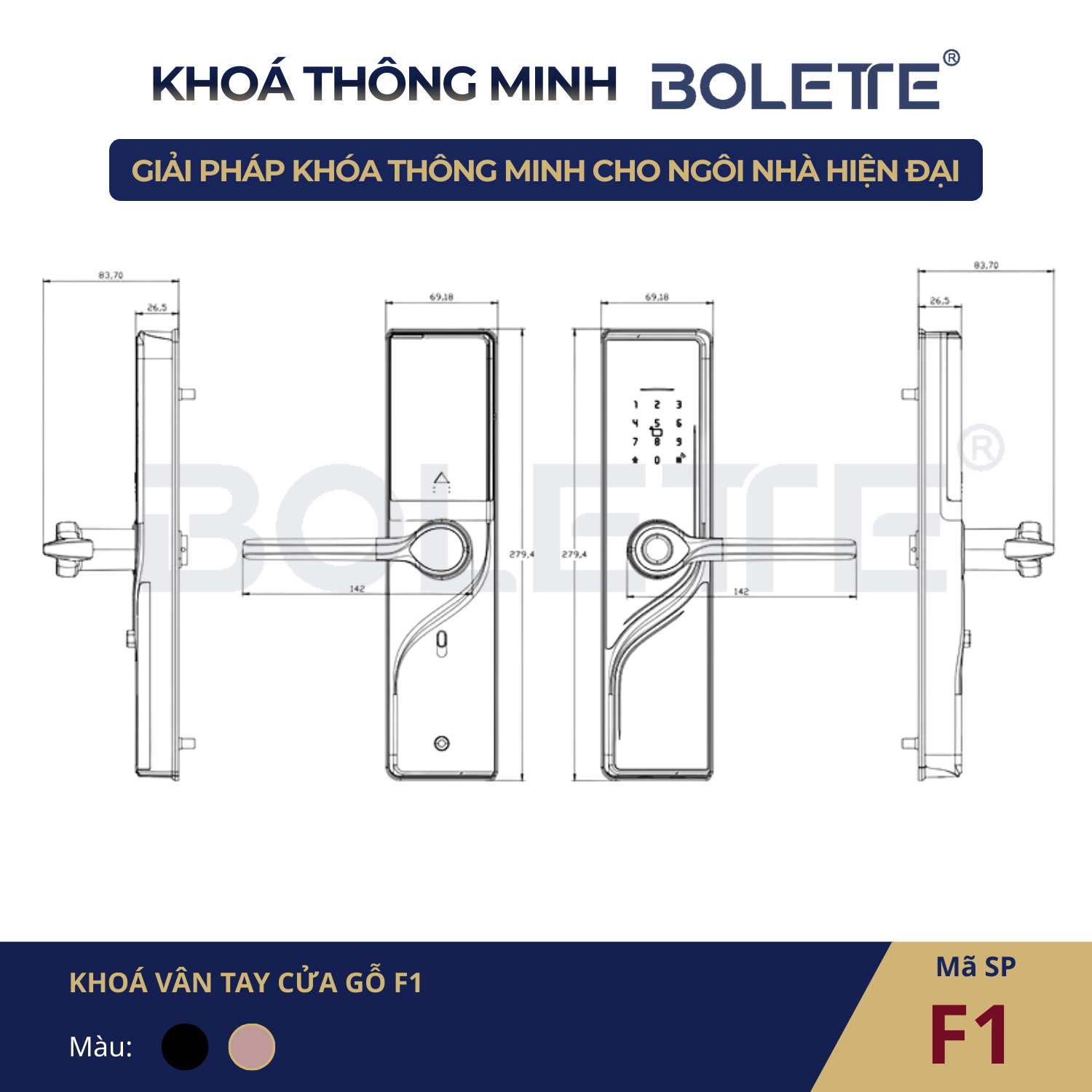 Khoá thông minh Bolette F1 là dòng sản phẩm đột phá chuyên dụng cho các loại cửa gỗ tự nhiên, cửa gỗ công nghiệp tại nhà phố, căn hộ chung cư và văn phòng. Với sự kết hợp hoàn hảo giữa chất liệu hợp kim cao cấp và công nghệ nhận diện sinh trắc học hiện đại, Bolette F1 không chỉ là một chiếc khoá, mà còn là món đồ nội thất đẳng cấp nâng tầm không gian sống.